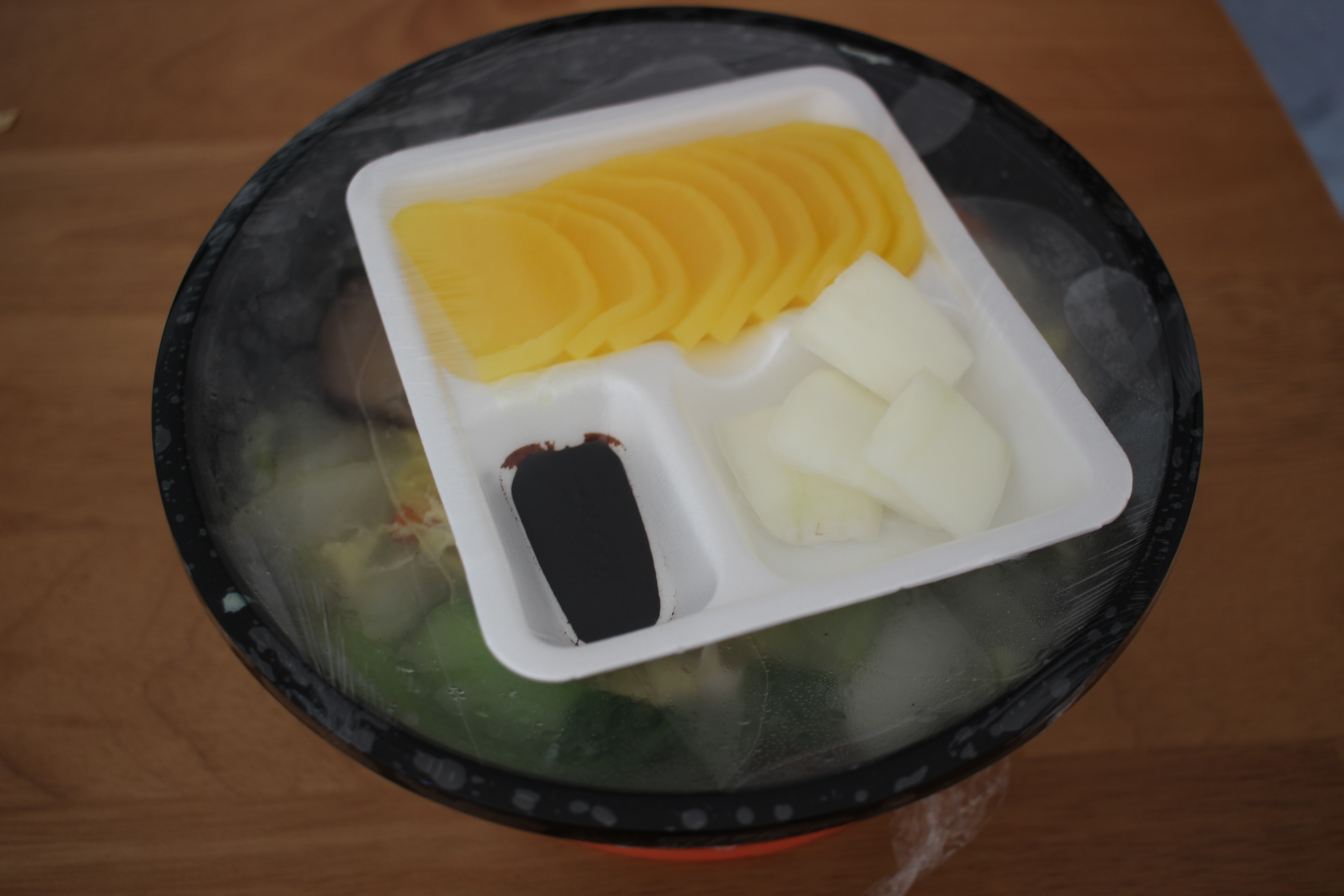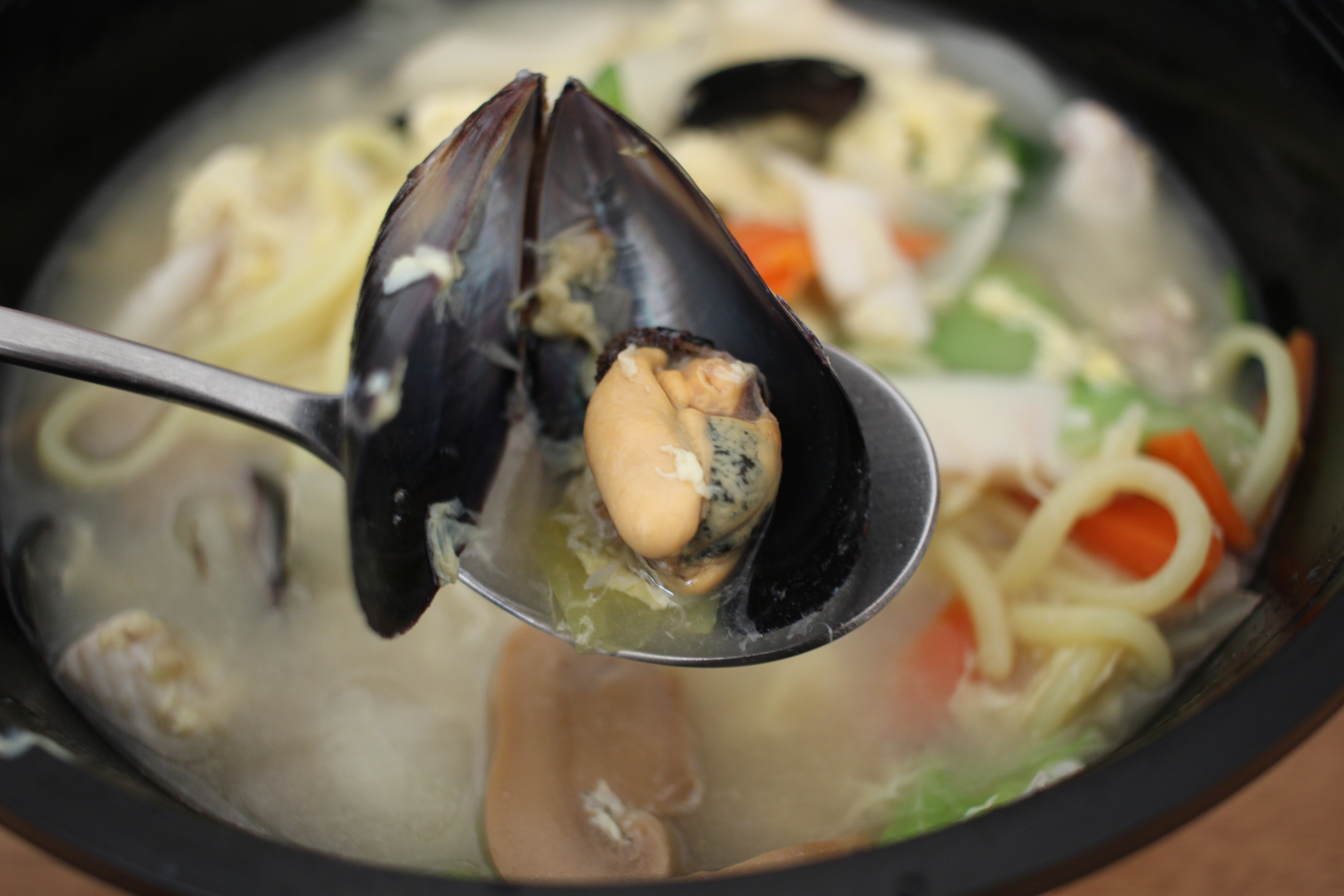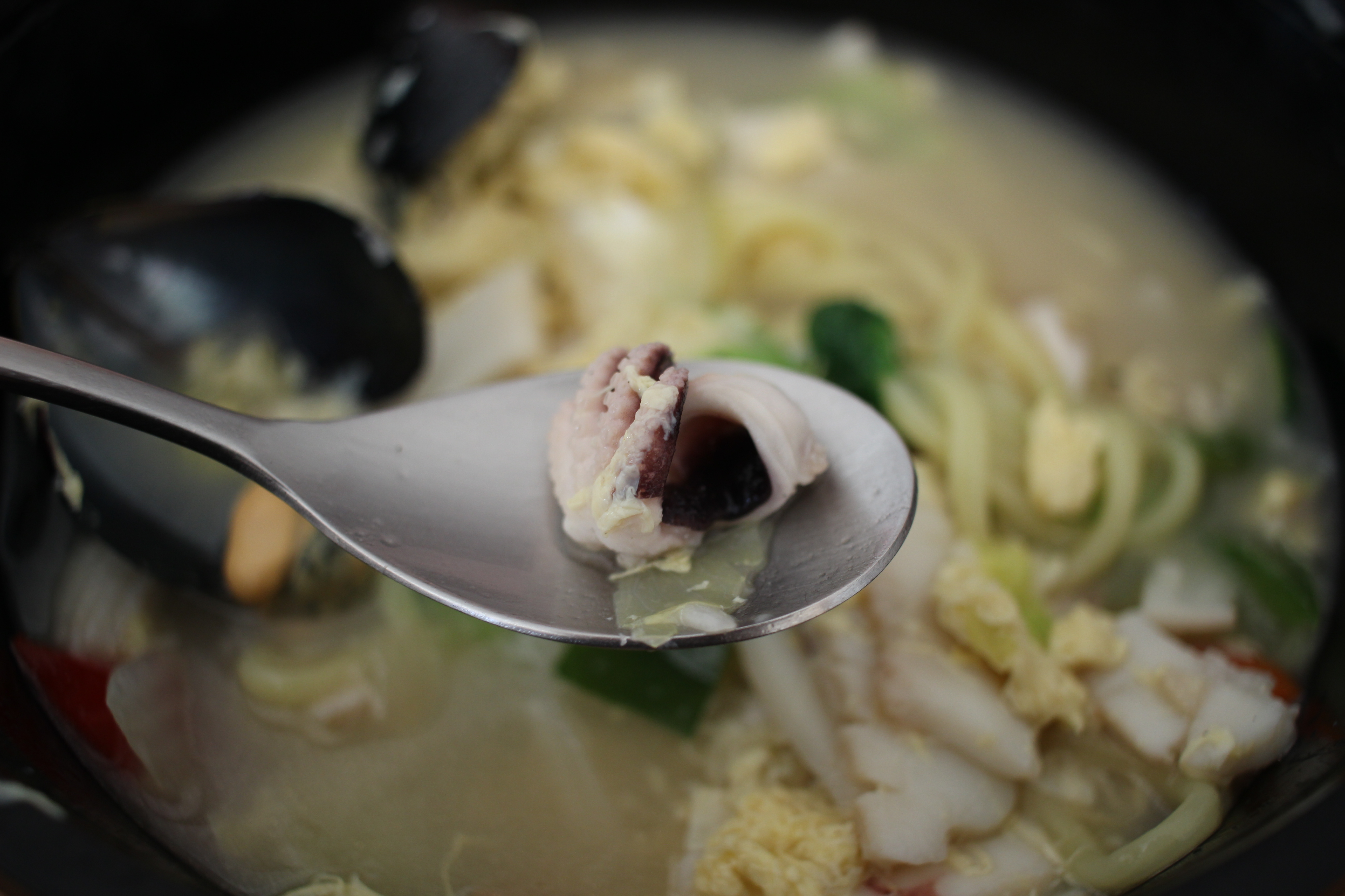 버섯, 오징어, 홍합을 비롯하여 여러 야채들도 함께 들어있습니다.