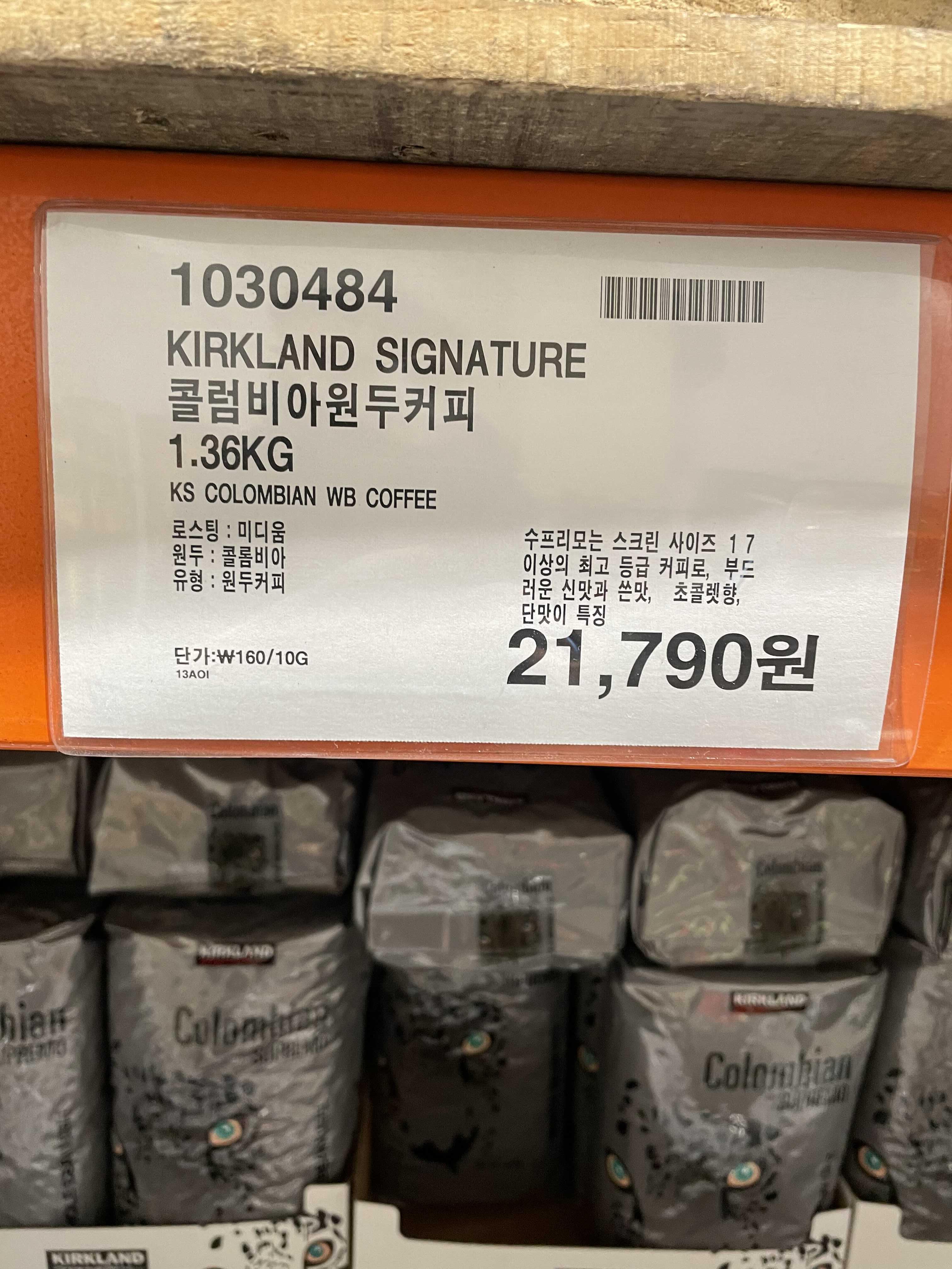8. 커클랜드 시그니처 콜롬비아원두커피