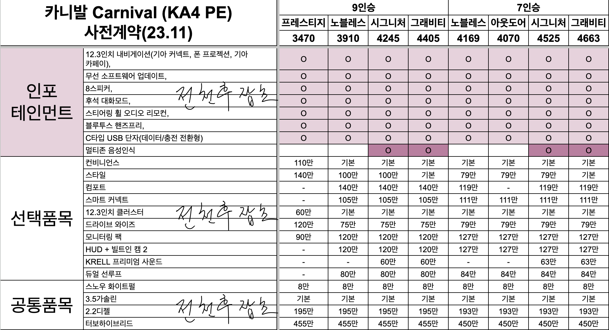 해당 옵션이 어디 트림에서 가능한지, 어떤 옵션에서 추가할수 있는지 검토후 선택하시는 것을 추천드립니다.