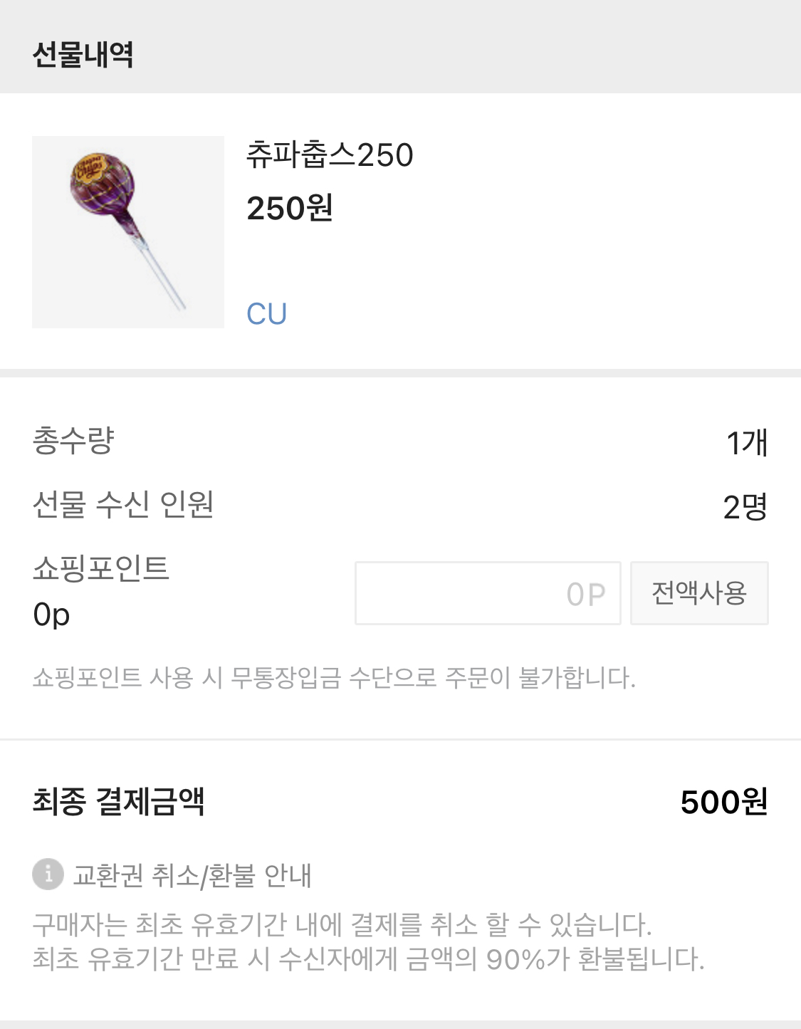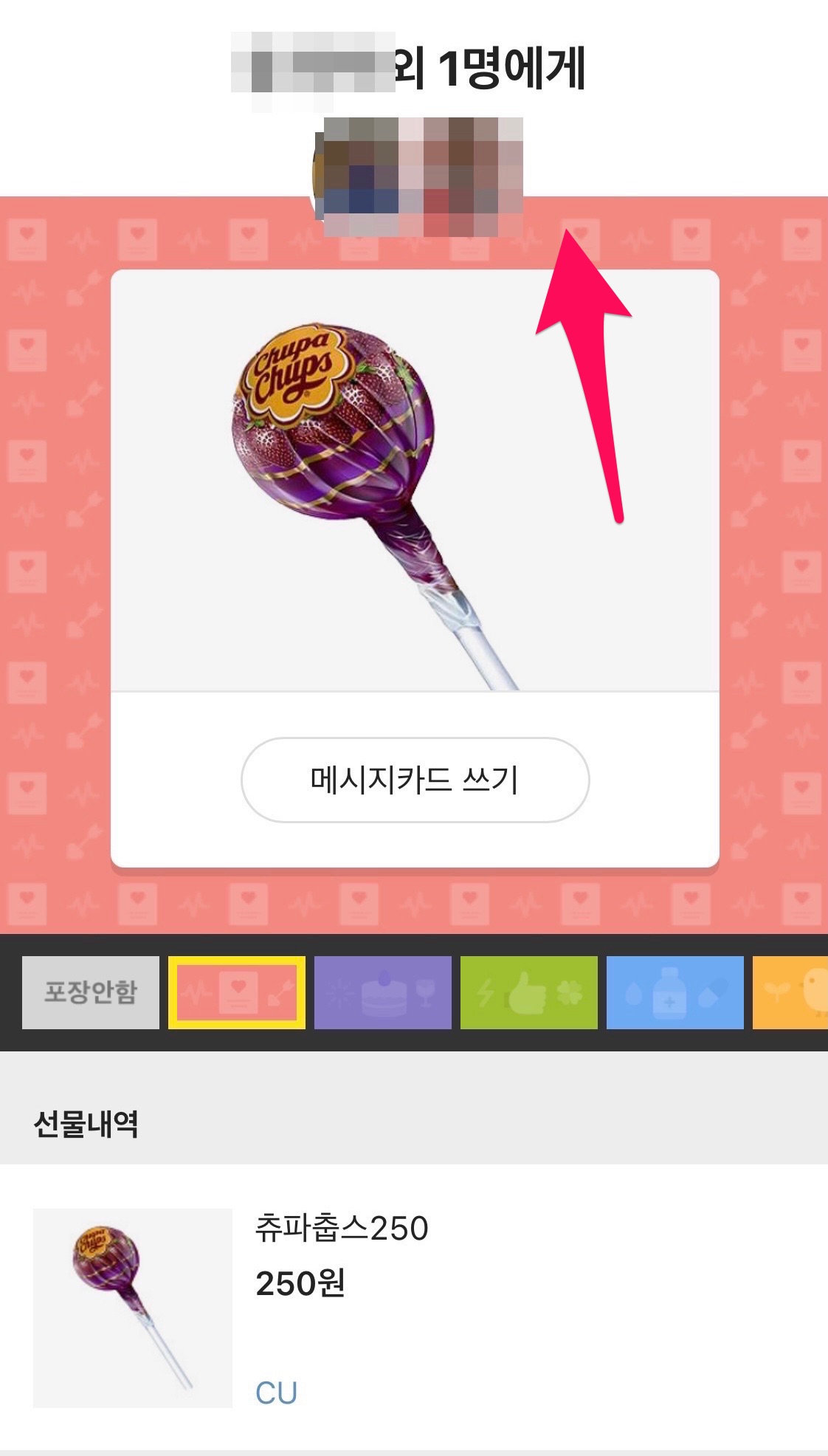하단부에 선물받을 사람을 선정해줍니다.
