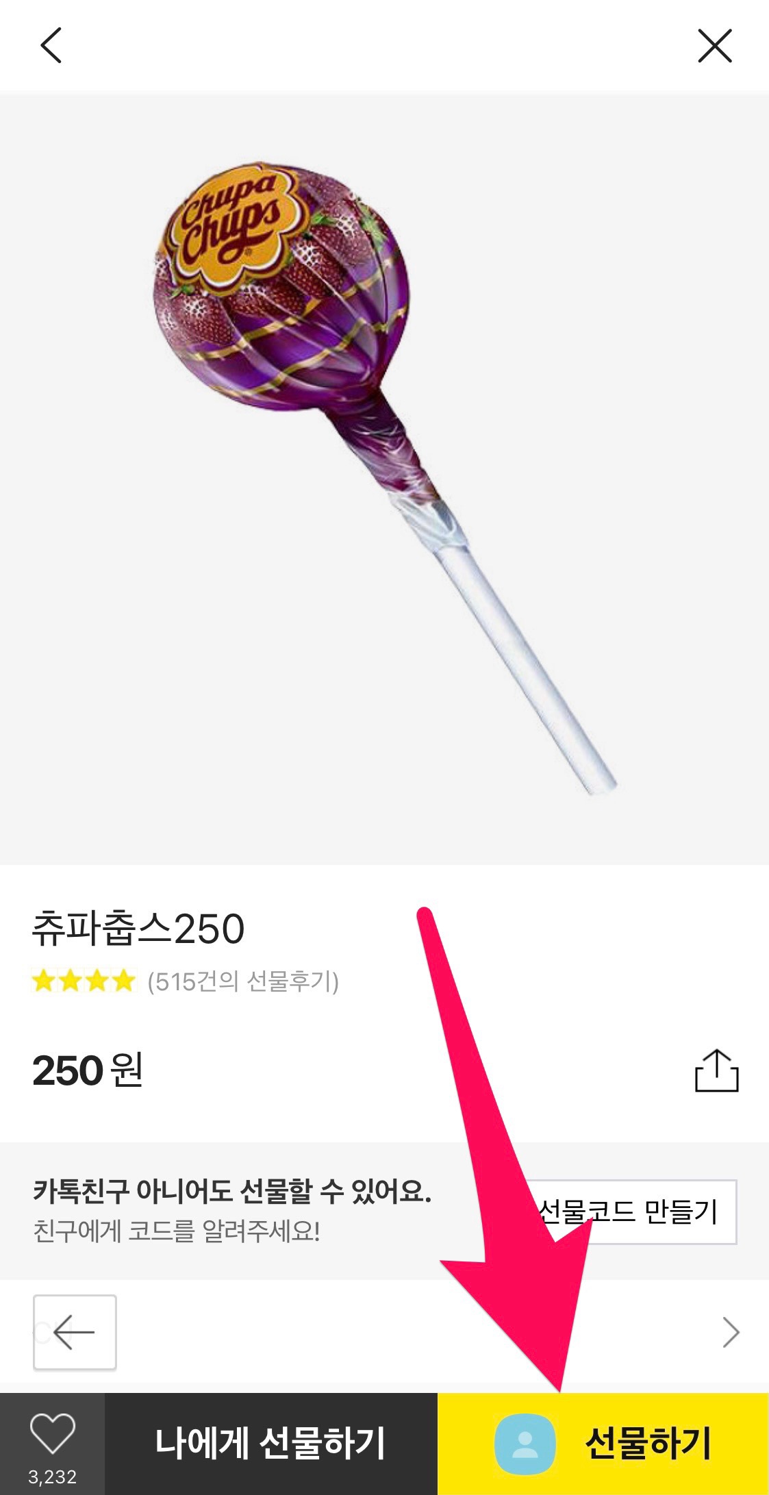 먼저 더보기(...)탭- 선물하기 버튼을 누릅니다.